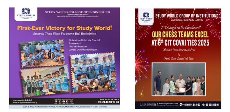The 5th Annual Sports Day of Study World College of Engineering was held with great enthusiasm and energy on 9th May 2025, at the college playground. The event served as a platform for students to showcase their athletic talents, teamwork, and school spirit in an atmosphere of celebration, competition, and unity.